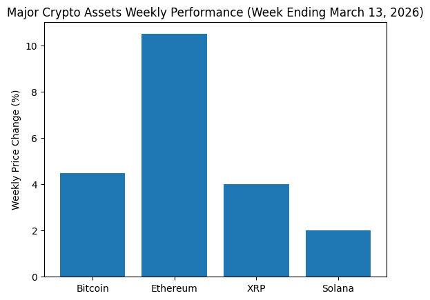 The cryptocurrency market is ending the week of March 13, 2026 with a cautiously bullish recovery, as Bitcoin and several major cryptocurrencies pushed higher despite ongoing geopolitical tensions and global market uncertainty.