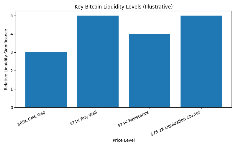 | $75,200 | Liquidation Cluster | Could trigger rapid upside move |