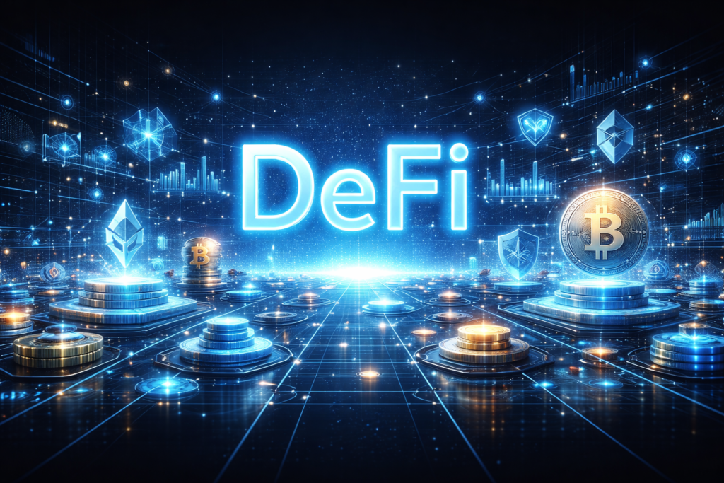 DeFi, short for Decentralized Finance, is a system of financial services built on blockchain technology that removes traditional intermediaries such as banks, brokers, and payment processors. Instead of relying on centralized institutions, DeFi allows users to lend, borrow, trade, and earn interest directly with one another through automated smart contracts.